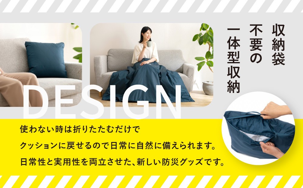 ●日常使いはクッションで保管に困らなく、災害時には防寒対策/目隠しになる着られる寝袋。