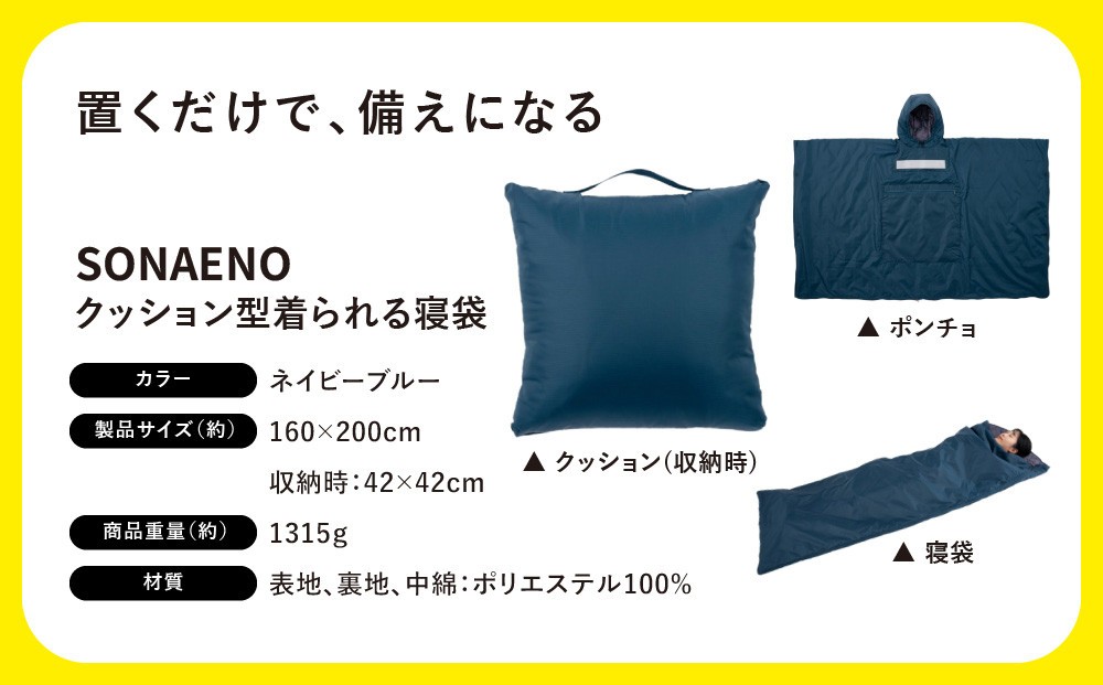 着る寝袋で安心の防災対策を実現! SONAENO クッション型着られる寝袋