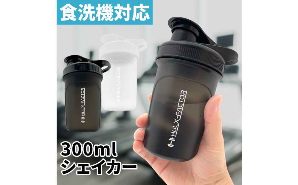 便利でスマートなプロテインシェイカー! 【全2色】ハルクファクター シェイカー ボトル 300ml 食洗機対応 カチッと閉まる プロテイン シェーカー 大容量 半透明