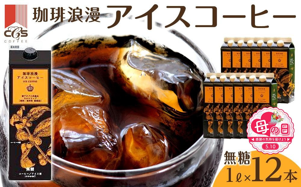 レギュラーコーヒーを100%使用。コーヒー好きのための、濃いアイスコーヒー 【母の日】珈琲浪漫 アイスコーヒー 1L×12本 無糖 コーヒー 飲料 濃いコーヒー 愛知 名古屋 珈琲 人気 おすすめ | コーヒー 珈琲 アイスコーヒー 濃いコーヒー 老舗 濃厚 無糖 飲料 人気 おすすめ カフェ ドリンク コーヒー豆 深煎り ストレート アイスドリンク ギフト プレゼント 送料無料