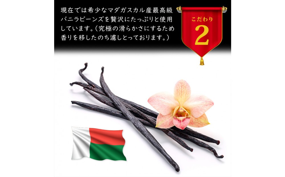 香りづけにはマダガスカル産の希少なバニラビーンズを使用しより一層美味しさを加えています。