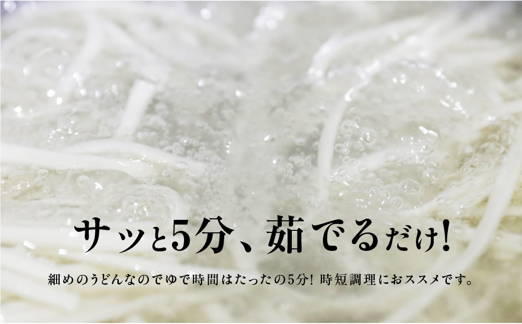愛知県小麦「きぬあかり」と豊橋産スーパーもち麦「ワキシーファイバー」を使用し、原材料はすべて国産の細目仕立ての乾麺です。この食感とのど越しは、ザルうどんやつけ麺風がおすすめです。乾麺機械加工では日本唯一の包丁切り加工で、麺の角立ちが抜群です。
