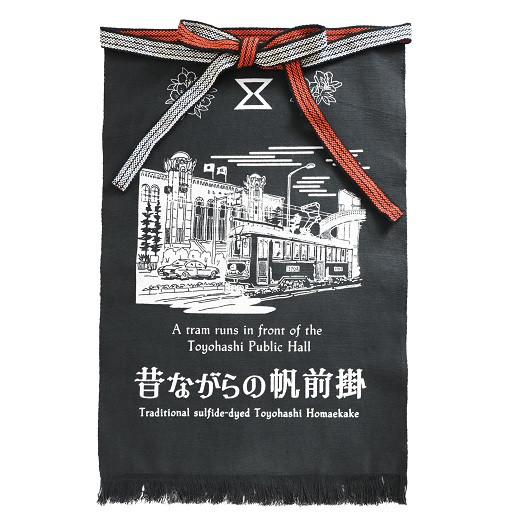 硫化染め帆前掛け『豊橋ちぎり 市電と公会堂(ブラック)』