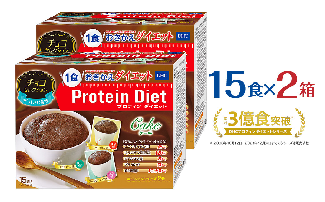 | 容量 | DHCプロティンダイエット ケーキ チョコセレクション 15袋入×2箱 1箱あたり:735g(49g×15袋) |