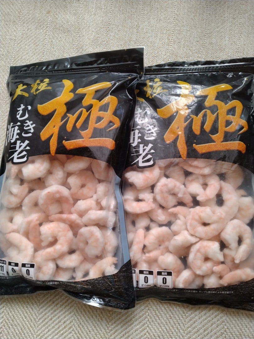 大ぶりのえびで、思っていたよりもたくさん入っていました。大きな袋が2袋分でそれぞれにジッパーがちゃんとついていて、保存もしやすいです。味も美味しかったです。