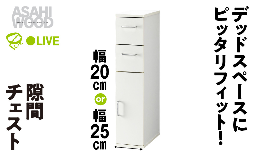 気になる隙間に収納スペースを創出できる便利ストッカー 朝日木材 隙間チェスト 幅が選べる 20cm / 25cm ホワイト≪SLK-9020KC≫≪SLK-9025KC≫隙間収納 ストッカー キッチン収納 積載可能 ホワイト 棚 収納 リビング収納 ピッタリ収納 幅 スリム 家具 白 シンプル 40000円 45000円愛知県 豊橋市
