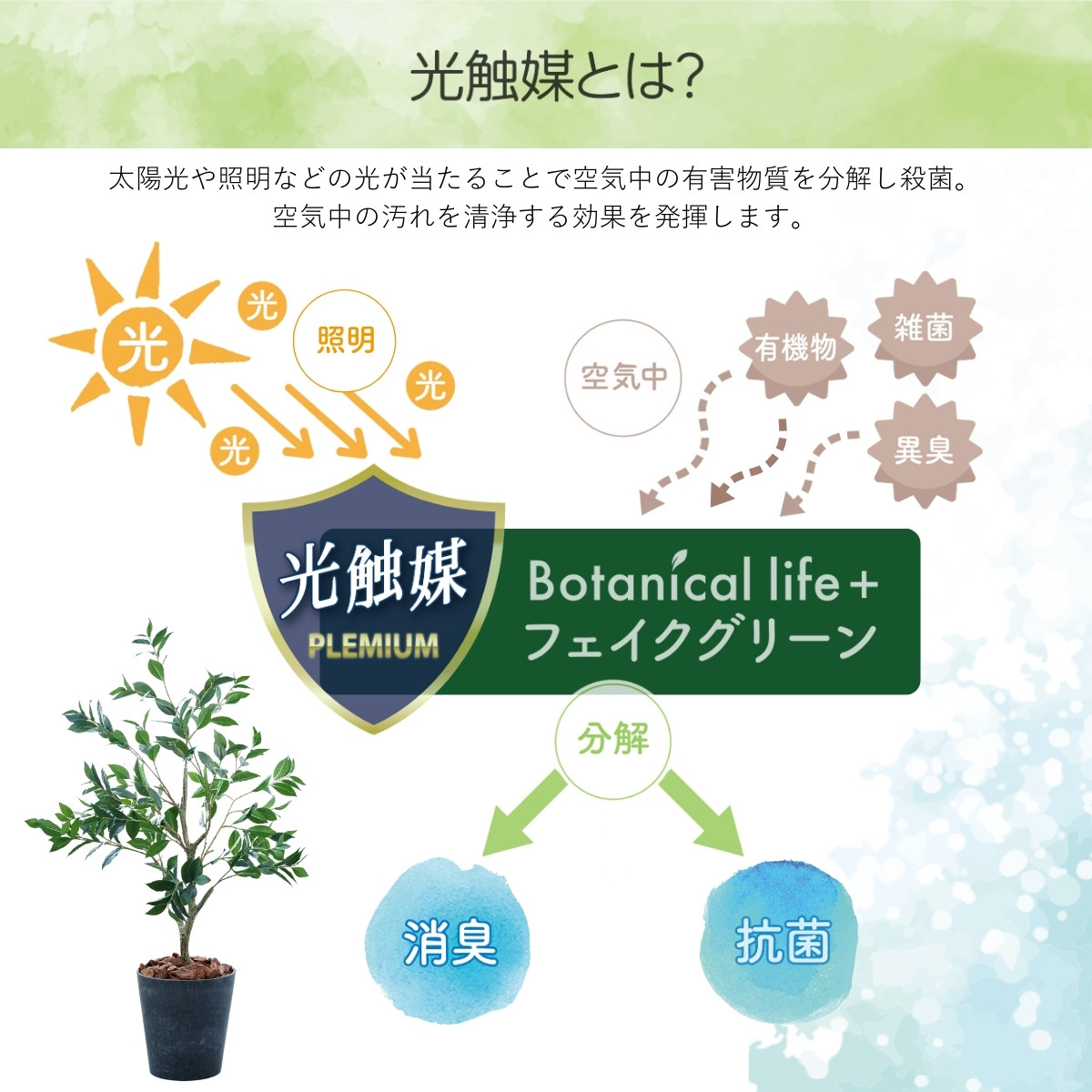 光触媒加工が施されたフェイクグリーン、抗菌・消臭効果あり快適な室内環境をサポート フェイクグリーン Botanical life+ Dシリーズ ローリエ 120cm 光触媒加工 鉢付き インテリア 抗菌 消臭 愛知県 豊橋市 送料無料 52000円