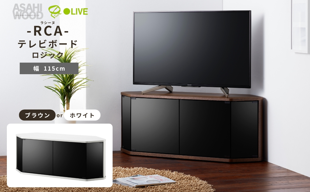 コーナーにもピッタリ収まるようなデザインのハイタイプテレビボード 朝日木材 ラシーヌロジック 省スペースコーナー対応テレビボード 幅115cm≪色が選べる≫ブラウン ホワイト 家具 シンプル テレビボード コーナーテレビボード ローボード AVボード リビング 居間 ナチュラル カフェ おしゃれ お洒落 愛知県 豊橋市