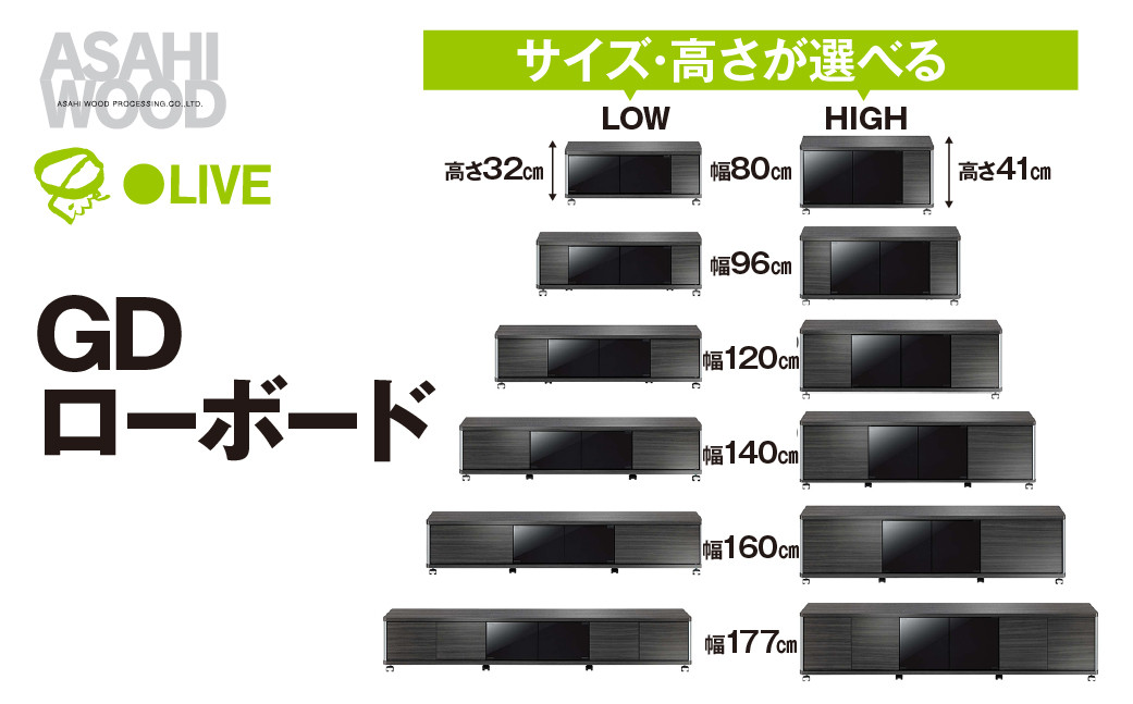 シンプルなデザインと充実した収納、アッシュグレー木目でテレビとの相性もGOOD 朝日木材 GD ローボード ≪選べる幅・高さ≫ 家具 シンプル ローボード テレビ台 テレビボード テレビラック tv台 tvボード 収納 シェルフ コード 穴 配線 孔 リビング 居間 ナチュラル カントリー カフェ おしゃれ 愛知県 豊橋市