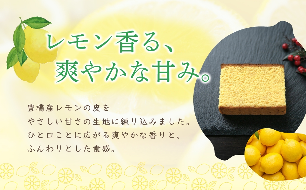 ふわっとしたかすていらにレモンピールを加え爽やなレモン香るかすていらに仕上げました。