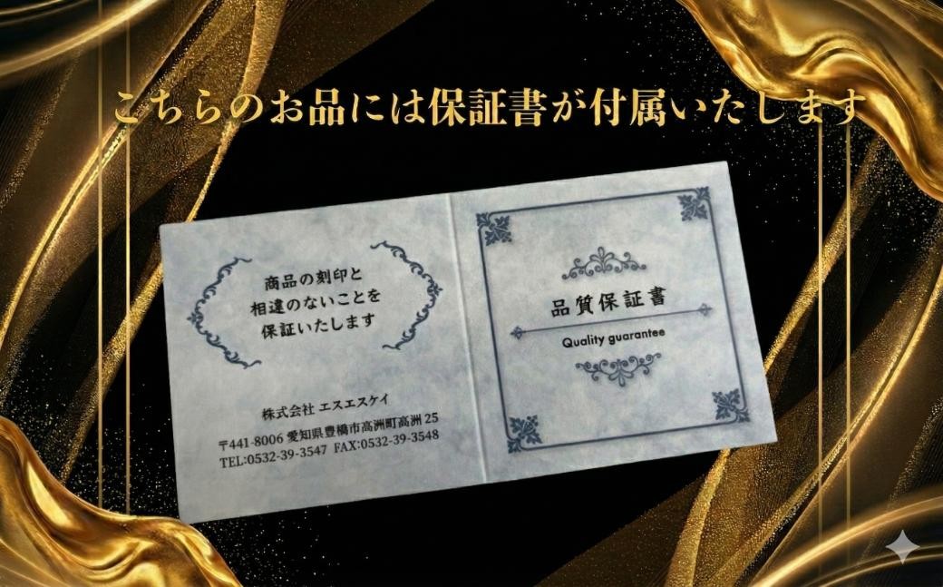 豊橋の刻印と手筒花火の意匠を刻み込んだ特製小判を、純金のおきものとして仕立てました。 市内の職人が一つひとつ丁寧に仕上げを施すことで、手のひらに収まる小さなサイズながらも、豊橋の熱気と黄金の輝きを感じられる仕上がりとなっています。 本品は、豊橋の夏祭り「手筒花火」の迫力や熱気を、日常の暮らしの中でも感じていただきたいという想いから企画されたものです。 地元職人の手仕事にこだわり、「地場産品」としての価値を大切にしながら、飾りやすく保管しやすい手のひらサイズにデザインしました。 商品の成形から仕上げまでの全工程を豊橋市内の職人が手掛け、細部まで精緻に仕上げることで、コンパクトながら存在感のある純金おきものに仕立てています。 伝統文化を軽やかに楽しめる特別な一品としてお届けします。 【株式会社エスエスケイ】 「喜ばれるものをつくる」「安心を売る」を理念に掲げ、関わる人へプラスの存在であり続ける企業です。 お客様・協力業者様との信頼関係を大切にし、ものづくりの経験と知識を生かして創業16年を迎えました。 企業理念を根幹に、お客様のニーズに応じながら“ベストプライス”を追求したものづくりを行っています。