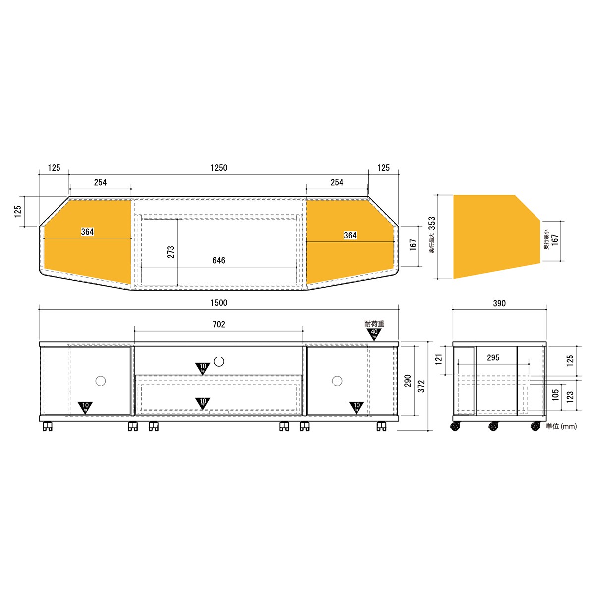 | 容量 | キャスター付きAVボード リヴァンテ 幅150cm ※グレー 素材/材質:プリント紙化粧パーティクルボード 【サイズ】 ・約幅150×奥行39×高さ37.2cm 【耐荷重】 天板40kg、棚板10kg、引出10kg 要組み立て品 |