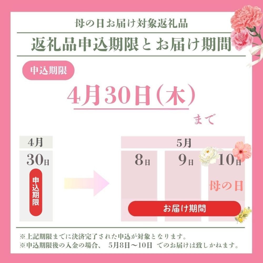 | 発送期日 | 母の日お届け(5月8日~10日)指定日不可 |