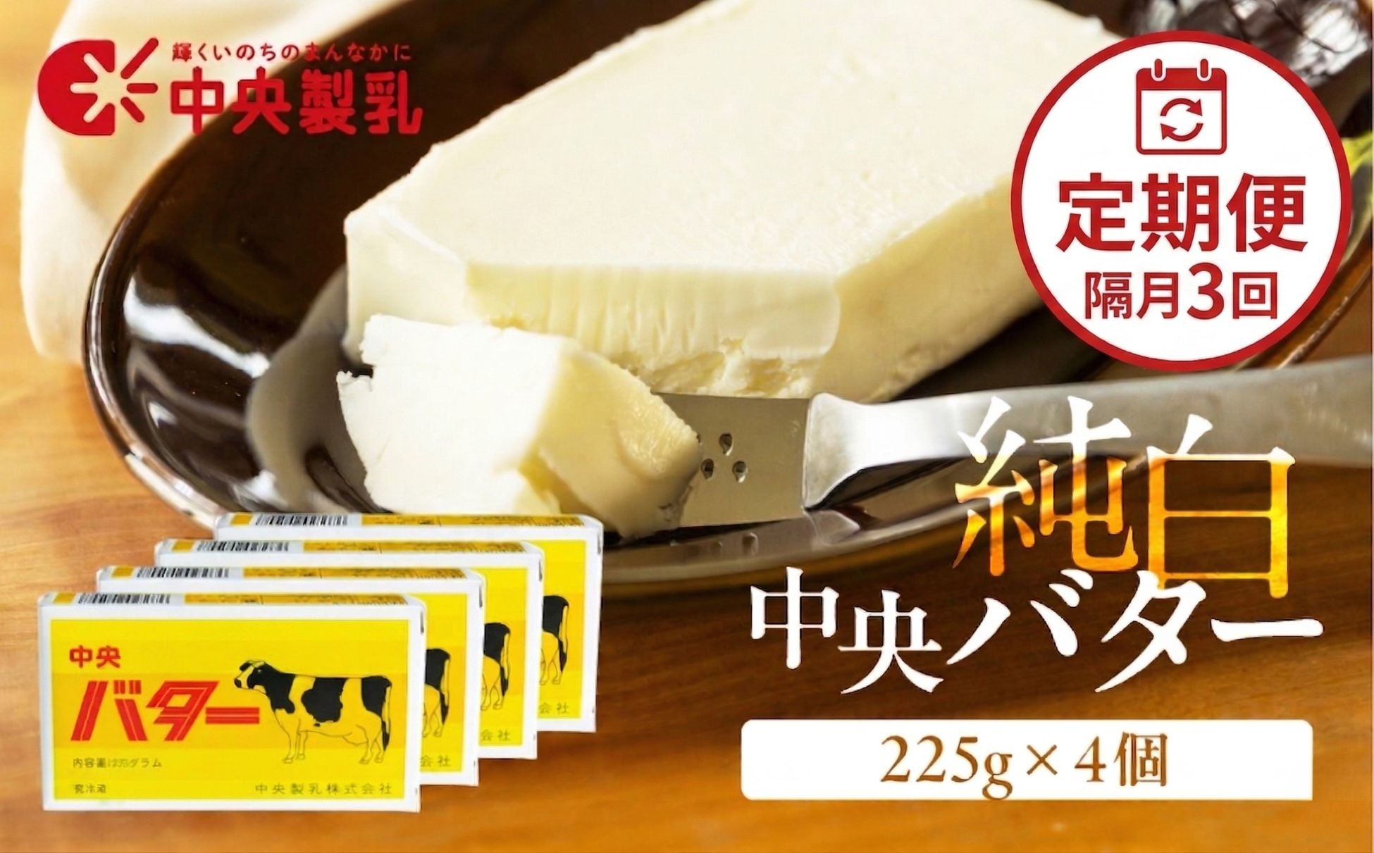 NEW 【定期便3回 隔月お届け】中央製乳 純白 中央 バター 225g 4個 …