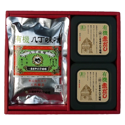 有機JAS認定の原料を使用した八丁味噌・赤だしの詰合せをお届けします。