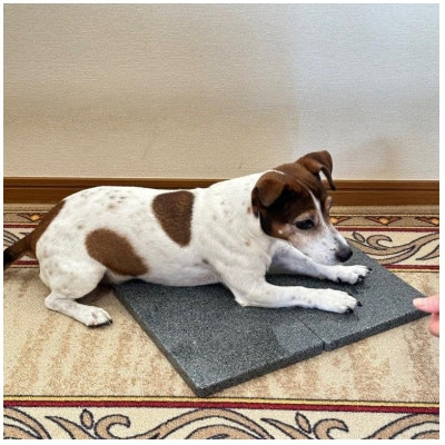 わが家の愛犬もSTONE-MATを2枚合わせた状態で使用しています。夏の季節は特に、腹ばいになり気持ちよさそうに休息しています。