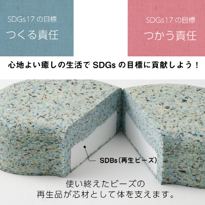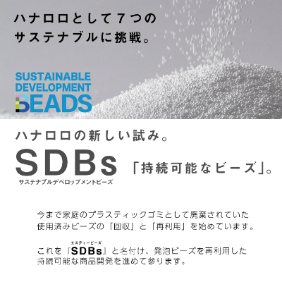 2021年よりハナロロでは使い終えたビーズクッションのビーズの回収をはじめました。さらに、回収したビーズから新たな商品を開発し、持続可能な商品(SDBs)を作り始めました。
