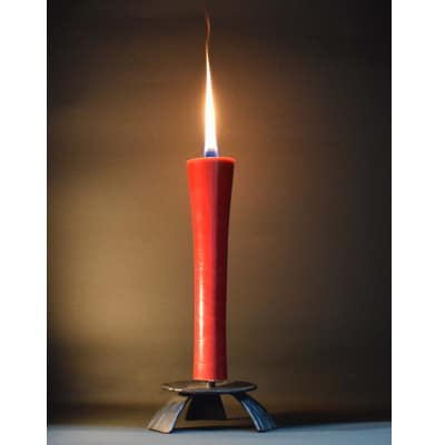 松井本和蝋燭工房の和蝋燭はすべて手作りで、国内産ハゼの木の実蝋を100%使用し、400年の伝統を誠実に継承した岡崎の伝統工芸品です。本和蝋燭は、地球にやさしい純植物性の原料である木蝋(ハゼの木の実を搾ったもの)を使用しているため油煙が少なく、液だれもほとんどありません。また、風に吹かれても消えにくく灯りが長持ちします。和ろうそくの切り口は、手作りの証しである年輪状になっていることが特徴です。 和ろうそく使用時には芯切りバサミ・火消しをお使いください。 ※松井本和蝋燭工房の製品から出た蝋(ろう)を環境に配慮し再利用した50年以上前から行うサステナブルな再生朱蝋燭(R)です。 ■注意事項/その他 【使用上の注意】 ・1本あたりの燃焼時間は約9.5~10時間です。 ・蝋燭を灯している時は、そばを離れないでください。 ・燭台へまっすぐに立ててください。 ・燃焼途中には、必ず芯切りをし、正常な炎を保ってください。 ・風のある場所での使用は、蝋が流れやすいので十分注意してください。 ・蝋立てに蝋が残っている場合は、きれいに取り除いてから使用してください。 【保管上の注意】 ・冷暗所で保管してください。(冷蔵庫での保管も可能です。) ・小児の手の届かないところに保管してください。 ・蝋燭に点火する時は、ライターなどを本体に対して垂直に傾けてください。 ・品質上問題はありませんが、長期間保管をすると蝋燭の表面に白っぽい粉が浮いてきます。その際は布で拭き取りご使用ください。 ※画像はイメージです。(2枚目の画像は左から100匁、80匁、50匁の和ろうそくです。) 実際にお届けするのは「寺院用 100匁棒 再生朱蝋燭(R)」です。 岡崎市で行っている製造加工工程:原材料の仕入れ、成形、絵付(手描き絵ろうそくの場合)、梱包