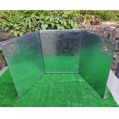焚き火をして暖をとり調理をするのに風を防ぎます。 正面パネルは2枚で差し込み横スライドタイプです。 高さ400mm長さ300mm~560mm位で焚火台の大きさに調整できます。 サイドパネルは高さ400mm長さ300mmです。 ペグ用の穴付き、ガスホース用の穴付きです。多目的にご利用ください。 ワンポイントとしてココペリ付きです。 亜鉛メッキ鋼板t1.0mmを選択してコスト低減、強度確保させていただきました。 本体の上に五徳等も乗せることができます。 ■注意事項/その他 ※画像はイメージです。