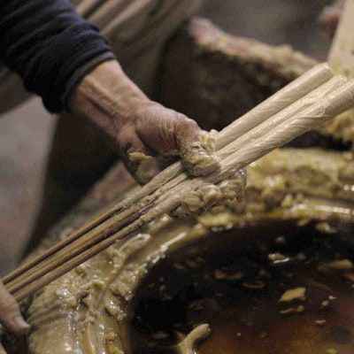 松井本和蝋燭工房の和蝋燭はすべて手作りで、国内産ハゼの木の実蝋を100%使用し、400年の伝統を誠実に継承した岡崎の伝統工芸品です。本和蝋燭は、地球にやさしい純植物性の原料である木蝋(櫨の木の実を搾ったもの)を使用しているため油煙が少なく、液だれもほとんどないため、安全にお使いいただけます。また、風に吹かれても消えにくく灯りが長持ちします。和ろうそくの切り口は、手作りの証である年輪状になっていることが特徴で、大きな和ろうそくほど見られます。