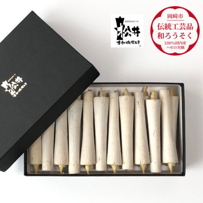 松井本和蝋燭工房の和蝋燭はすべて手作りで、国内産ハゼの木の実蝋を100%使用し、400年の伝統を誠実に継承した岡崎の伝統工芸品です。本和蝋燭は、地球にやさしい純植物性の原料である木蝋(ハゼの木の実を搾ったもの)を使用しているため油煙が少なく、液だれもほとんどありません。また、風に吹かれても消えにくく灯りが長持ちします。和ろうそくの切り口は、手作りの証しである年輪状になっていることが特徴です。 ■生産者の声 和ろうそくを使ってるのに蝋が垂れる理由をご存知ですか?大切なお仏壇がすすで汚れてしまいませんか?炎の出方が不安定ではありませんか? 大切なお仏壇を汚したくない方は、松井本和蝋燭工房の国内産ハゼの実蝋のみで作った手作りの和ろうそくをお試しください。 2016年伊勢志摩サミット関連行事「愛知・名古屋歓迎レセプション」で各国首脳陣への贈答品として選出された手描き絵ろうそくを製作した創業110年以上の老舗である松井本和蝋燭工房は、無上な国内産ハゼの実蝋を使用したすべて手作りの伝統的な本和蝋燭のみの製造販売店で、型和ろうそく・一般的な和ろうそくは扱っておりません。 自信を持って伝統製法で作った伝統工芸品の和ろうそくを提供しております。 ■注意事項/その他 【使用上の注意】 ・1本あたりの燃焼時間は約2.2時間です。 ・蝋燭を灯している時は、そばを離れないでください。 ・燭台へまっすぐに立ててください。 ・燃焼途中には、必ず芯切りをし、正常な炎を保ってください。 ・風のある場所での使用は、蝋が流れやすいので十分注意してください。 ・蝋立てに蝋が残っている場合は、きれいに取り除いてから使用してください。 【保管上の注意】 ・冷暗所で保管してください。(冷蔵庫での保管も可能です。) ・小児の手の届かないところに保管してください。 ・蝋燭に点火する時は、ライターなどを本体に対して垂直に傾けてください。 ・品質上問題はありませんが、長期間保管をすると蝋燭の表面に白っぽい粉が浮いてきます。その際は布で拭き取りご使用ください。 ※画像はイメージです。使用画像の一部に朱和ろうそくが写っておりますが、お届けするお礼品は、白の和ろうそくです。 岡崎市で行っている製造加工工程:原材料の仕入れ、成形、絵付(手描き絵ろうそくの場合)、梱包
