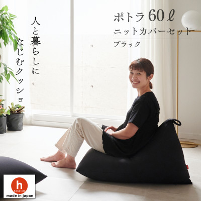 <ハナロロ> ビーズクッション ポトラ60リットル ニットカバー付(ブラック)【1569353】