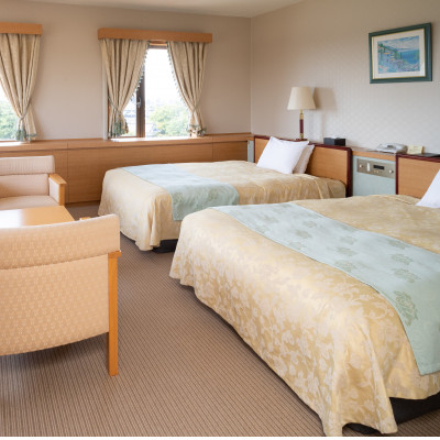 ゲストの方々の心を優しくつつみこむ最上階のデラックスツインルームで、どうぞごゆっくりお過ごしください。