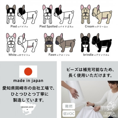 | 容量 | ■お礼品の内容について ・愛犬ぬいぐるみ フレブル S(パイド)[1個] 原産地:愛知県岡崎市/製造地:愛知県岡崎市/加工地:愛知県岡崎市 ■生産者の声 ■ハナロロの製品はすべて安心の国内産 ハナロロのプロデュースするハナロロペットは「タキコウ縫製」という縫製会社が経営を行っております。 だから製品はすべて自社工場で縫製し、生地・その他の行程もすべて国内協力工場で製造しております。 ひとつひとつ丁寧に心をこめて作ったものを自信を持ってまごころとともに、みなさまにお届け致します。 ■ペットの暮らしに基づいた商品設計 ペットが生活の中でとる姿勢のうち、座る・横になるをイメージし新しいカタチを創造しています。 形状やサイズを決定したあとはパタンナーによる型紙作りや試作を何度も繰り返しよりフィットするカタチにしていきます。 さらに製品化したあともよりにお客さまの声を参考に、カタチの微調整を繰り返し行い、はじめてハナロロペットの製品は出来上がります。 ■ペットの幸せな暮らしのために ハナロロペットの製品は、ペットのサイズに合わせて、お好みの色や素材、カタチを選んでください。 ペットにとっても、飼い主さんにとっても、快適で楽しい製品です。 |