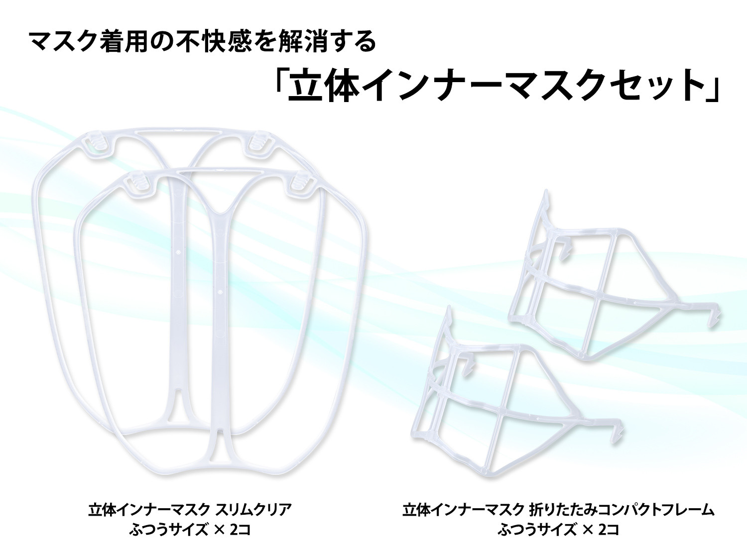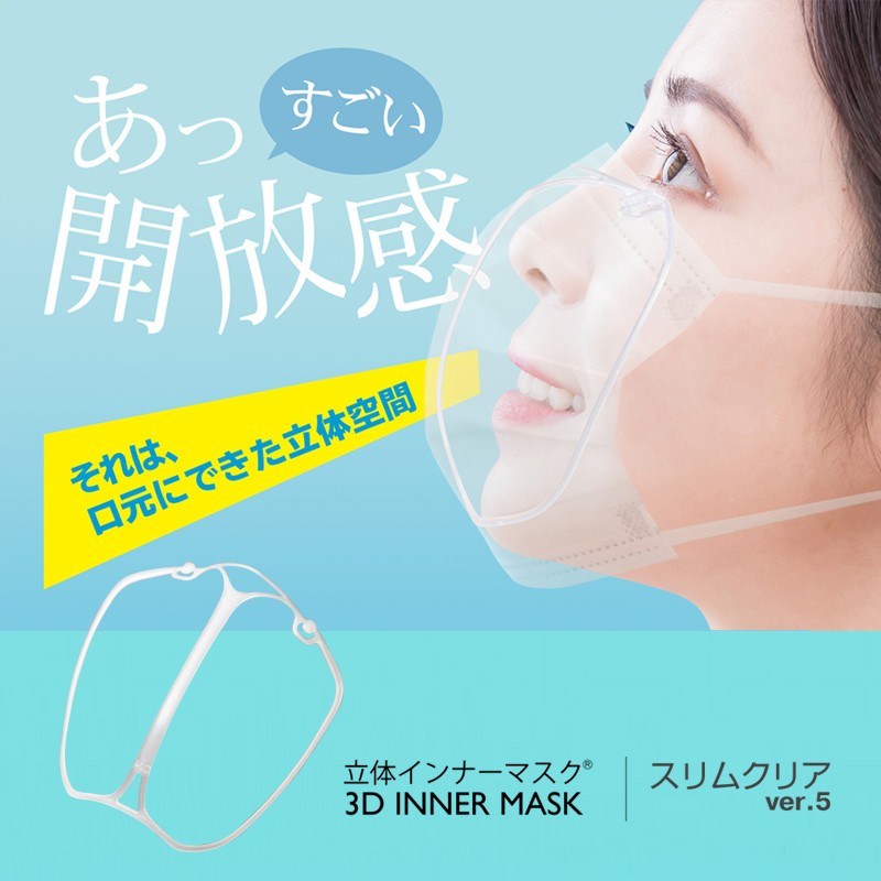 マスクの中にフレームを入れることにより口元に空間が生まれ、呼吸をしてもマスクが潰れず、
