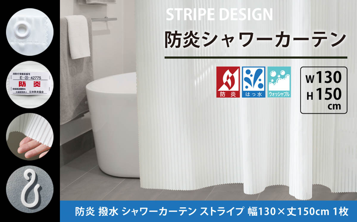 [30-25] 防炎 シャワーカーテン ストライプ 幅130x丈150cm 1枚