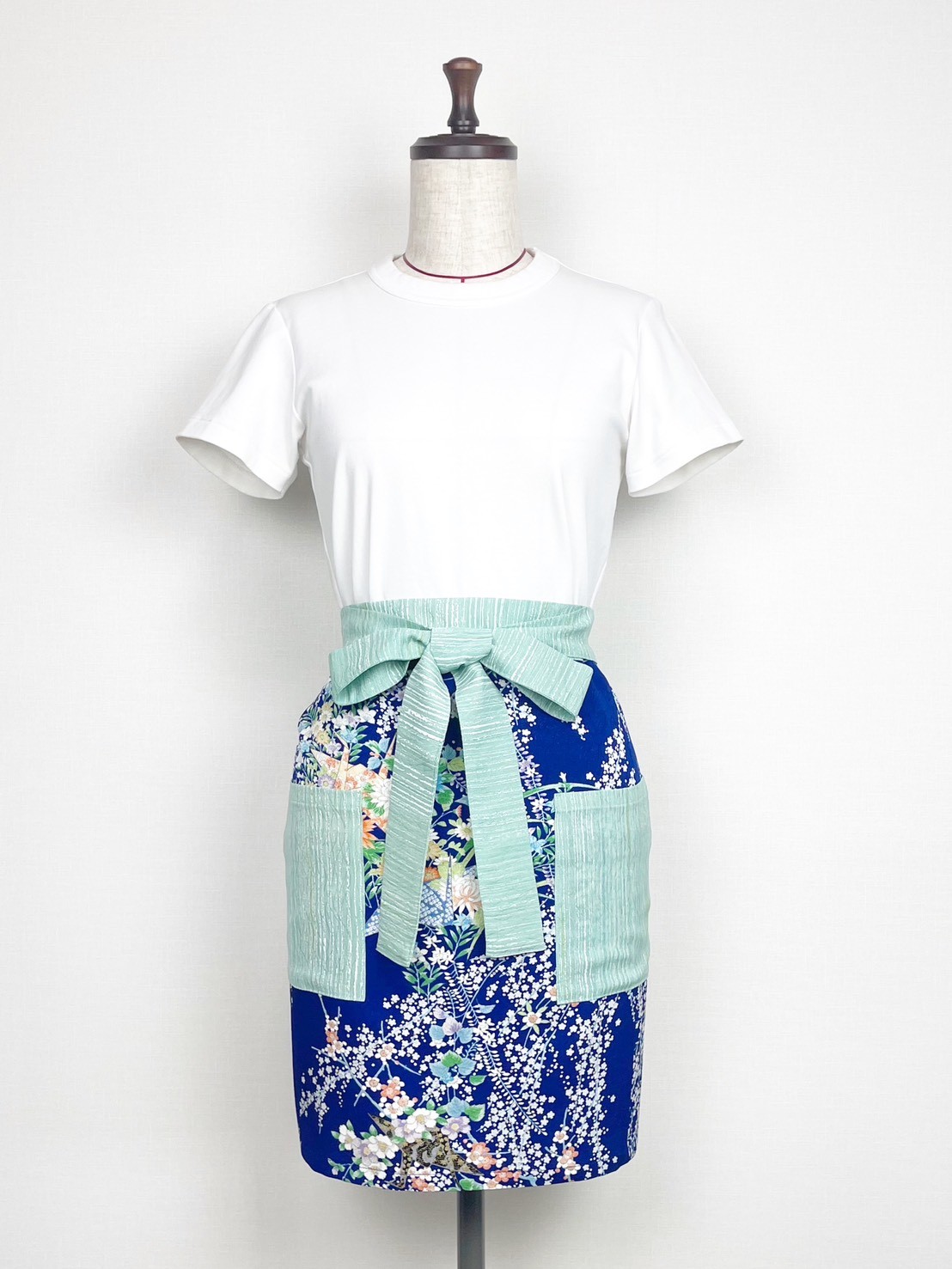 2種類の着物地を組み合わせた、和を感じる一点物のエプロンです。母の日や敬老の日など、プレゼントにもおすすめ。