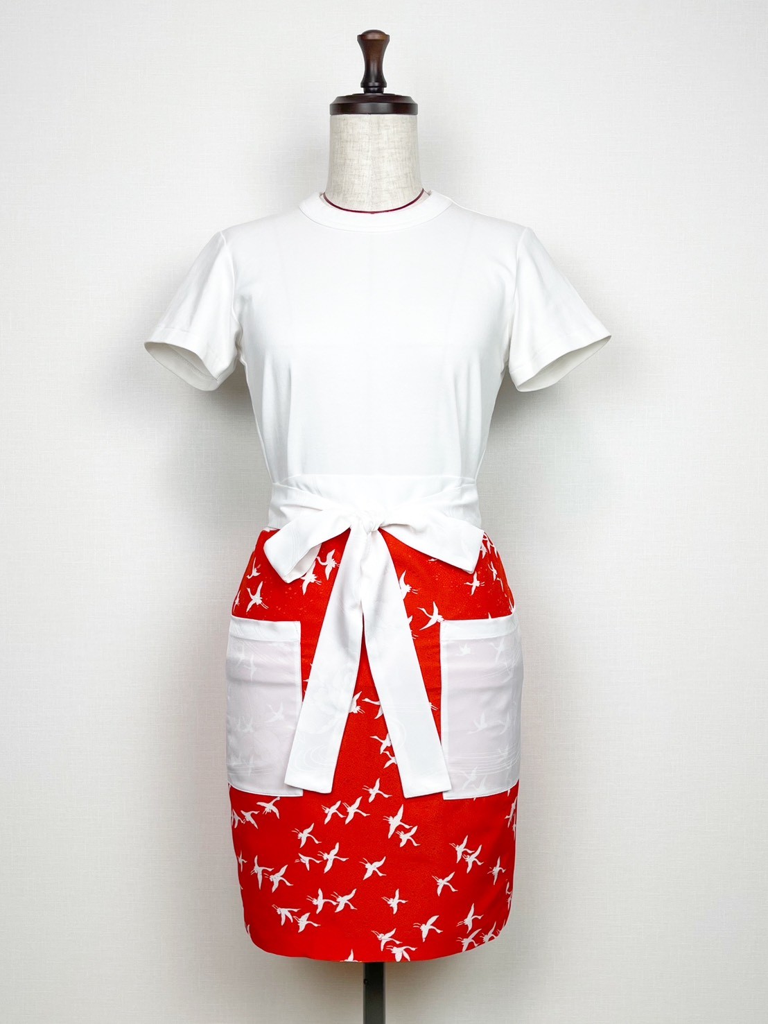 [25-39] 着物地カフェエプロン Sサイズ 丸洗い可能