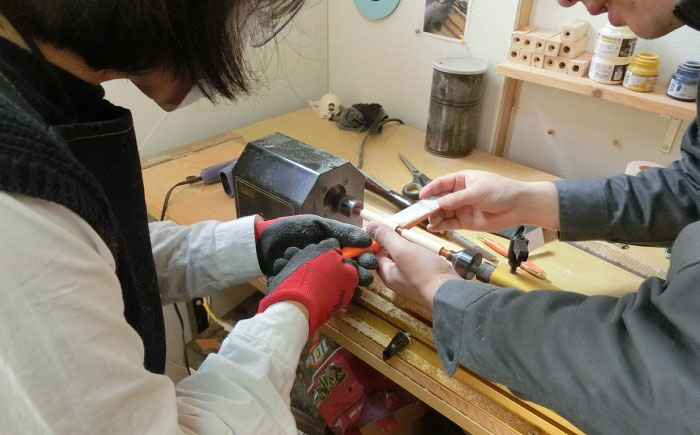 難しそうに見えますが、初めてでも、不器用でも講師がマンツーマンで教えますのでしっかりと日常で使えるボールペンが完成します。