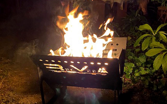 レクビィロゴが夜に映える焚火台です レクビィ オリジナル焚き火台 / 焚火台 キャンプ用品 アウトドア用品 / 瀬戸市 / 株式会社レクビィ [BBBG002]