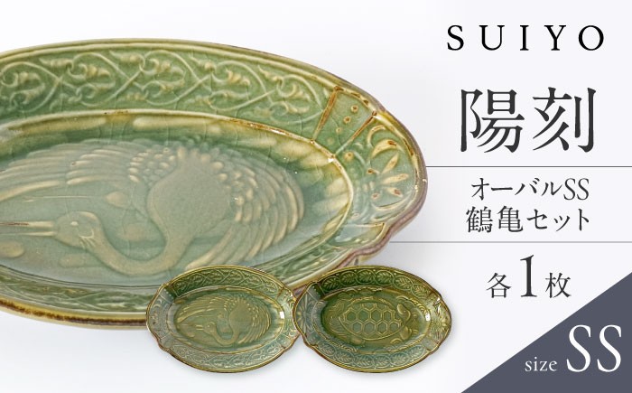 古き良きものを現代の食卓に 【瀬戸焼】 陽刻 オーバル SS 鶴亀セット 各1枚 / 瀬戸市 / 【SUIYO】 / 食器 電子レンジ対応 小皿 セット ギフト[BBAF018]