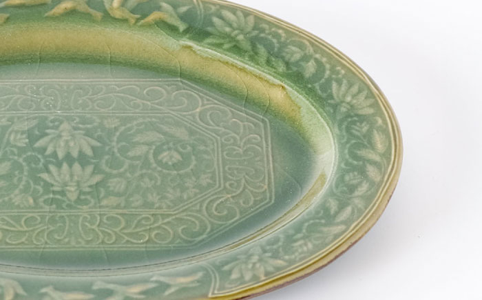 ※器の表面に「貫入」と呼ばれるヒビが見られますが、これは青磁の特徴であり問題ありません。