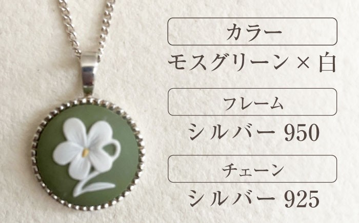 日本唯一のポーセリン陶彫カメオ。50年受け継がれた技術が宿る希少なアクセサリー <ROUND>シルバーペンダント スミレ モスグリーン / ペンダント ネックレス アクセサリー ギフト 贈り物 / 瀬戸市 / 陶華 [BBCD018]