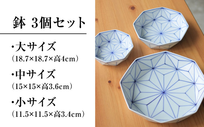 職人がひとつひとつ描く、縁起の良い麻の葉模様の鉢セット 【瀬戸焼】 麻の葉 鉢 3個セット 【眞窯】 / セット 鉢 器 [BBDK002]