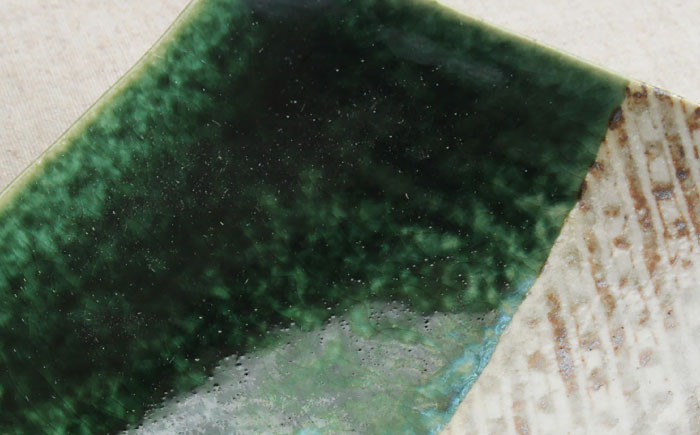 約1300度で焼成される織部は瀬戸焼の中でも国の伝統工芸品に指定されている赤津焼七釉の中で代表的な釉薬です。