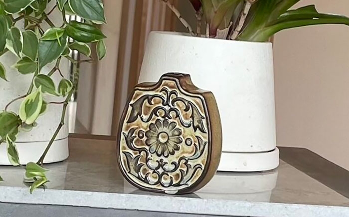 ニワトリのレリーフが美しい、グリップ付き一輪挿し