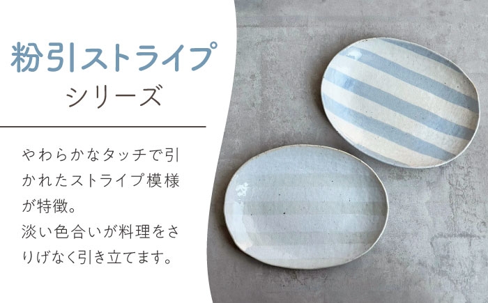 やわらかなタッチで引かれたストライプ模様が印象的な平皿です。
