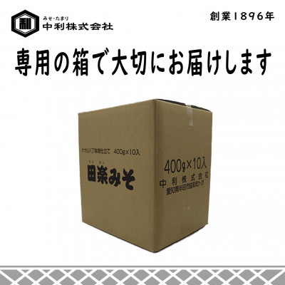 地域の方々に昔からご愛顧いただいており、中利で一番人気の「田楽みそ 八丁味噌仕立て」400g×10個のセットです。中利の田楽みそは、自社製造の長期熟成の豆みそを使用し、甘さ控えめでみその味わいが濃いのが特徴です。