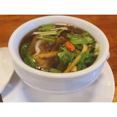 それまでに学んだ中医薬膳の考えを取り入れ、飲みやすさと美味しさの工夫を重ね、さらに烏骨鶏を加えパワーアップを目指しました。漂香茶館を代表する自慢のスープです。