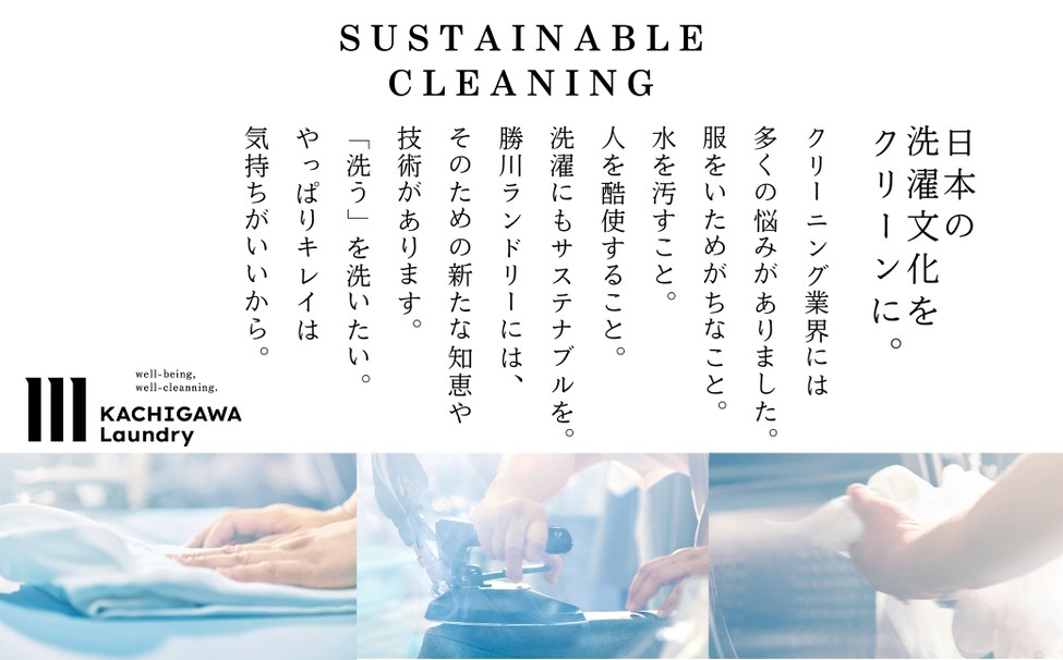 「海をまもる洗剤」で洗うプロクリーニング。コンセプトは1着1滴1人を想う。