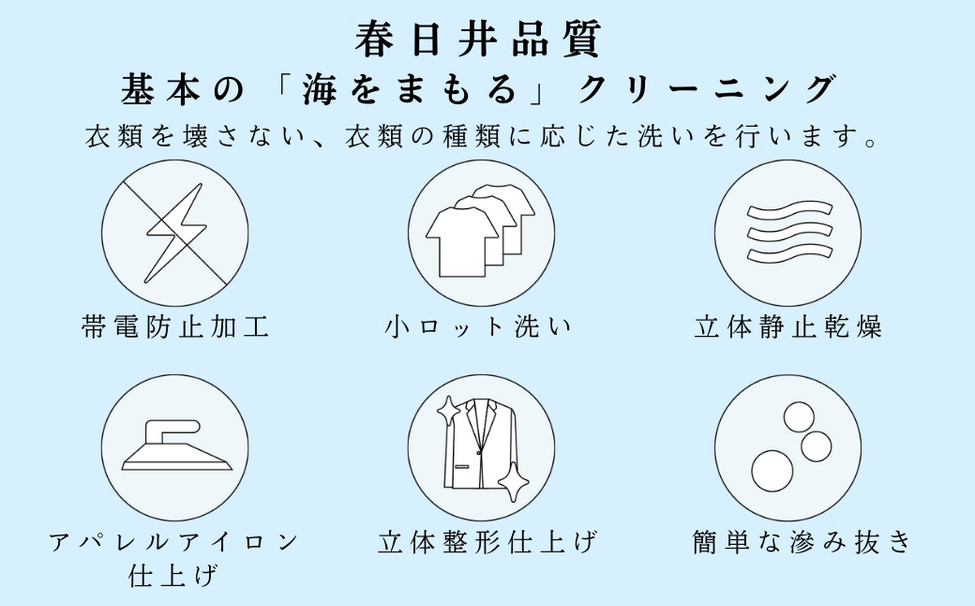 「海をまもる洗剤」で洗うプロクリーニング。コンセプトは1着1滴1人を想う。 宅配クリーニング 春日井品質(5点コース)