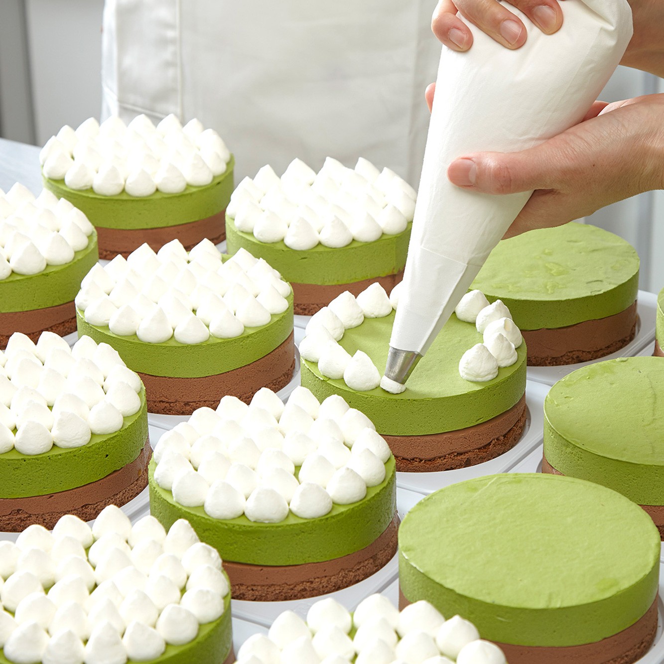 毎月楽しみにしている皆さまによろこんでもらえるように技とセンス、そして選りすぐりの素材を駆使して、パティシエが1台1台心を込めて、手作りをしています。
