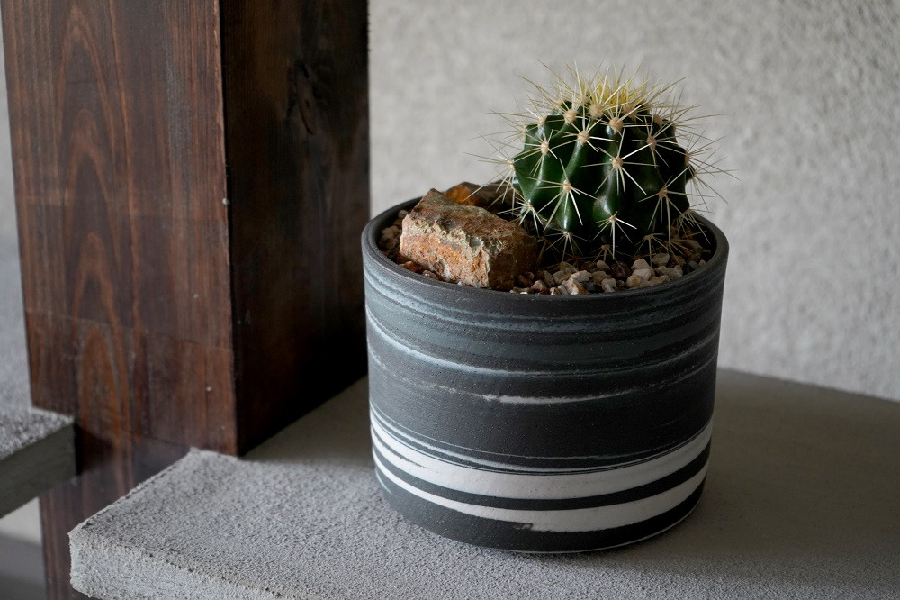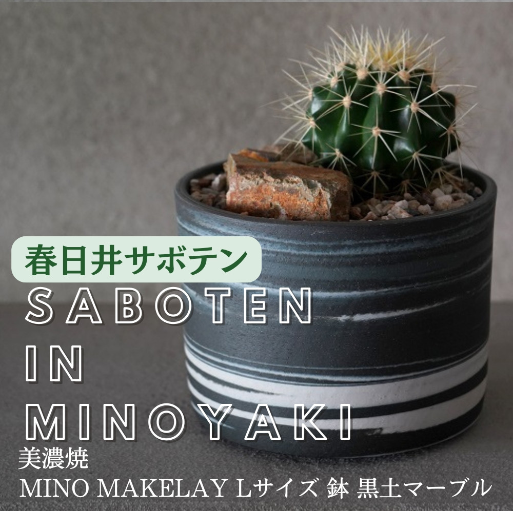 岐阜県多治見市「美濃焼」と愛知県春日井市「サボテン」の県境を超えたコラボが実現! 多治見市×春日井市コラボ 【美濃焼】 MINO MAKELAY Lサイズ 鉢 黒土マーブル × 【日本有数のサボテン産地】 春日井市の名店 後藤サボテン