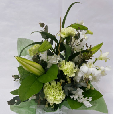 豊川市は花の一大生産地です。豊川の花材を使って野の花のような自然なアレンジが得意なフローリストがご用意させていただきます。