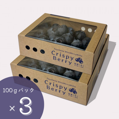 | 容量 | ■お礼品の内容について ・クリスピーベリー[100gパック×3個] 原産地:愛知県豊川市/製造地:愛知県豊川市 ■生産者の声 ブルーベリー「クリスピーベリー」を、一人でも多くの方に召し上がっていただけるよう、生産者一同精いっぱい取り組んできました。まだ誕生して間もないブルーベリーですが、出品した百貨店やスーパーでは品切れも相次ぎ、非常にご好評をいただいています。 今回はお礼品として、100g入りのクリスピーボックスをお届けします。クリスピーボックスには、当社で栽培している様々な品種をミックスして入れております。 甘みや酸味、香りに特徴のある品種がミックスされています。ぜひお気に入りの一粒を見つけてみてください! 異なる品種を2,3粒まとめて頬張っていただくのが私たちのおすすめです! 【トヨカワブルーベリーヒルズ】 愛知県豊川市で、営農と太陽光発電を同一敷地内で行うソーラーシェアリングなどを行っているアグリガスコム株式会社が運営しています。 同社ではこれまで、ブルーベリー以外にもニラやブロッコリーの栽培にも取り組んできました。 今回のブルーベリーを栽培しているトヨカワブルーベリーヒルズでは、およそ10000平方メートルの敷地にハウスを構え、6000鉢のブルーベリーを通年で栽培しています。 また、アグリガスコムで使われる電気は再生可能エネルギー100%のクリーンなエネルギーです。アグリガスコムでは美味しいだけでなく、未来のために地球と共存できる農業を目指しています。 |