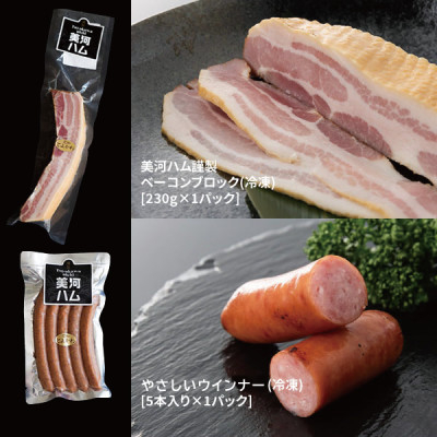 | 容量 | ■お礼品の内容について ・美河フランク ボイル(冷凍)[5本入り×1パック] 製造地:愛知県豊川市 賞味期限:製造日から180日 ・美河ハム謹製ベーコンブロック(冷凍)[230g×1パック] 製造地:愛知県豊川市 賞味期限:製造日から180日 ・やさしいウインナー(冷凍)[5本入り×1パック] 製造地:愛知県豊川市 賞味期限:製造日から180日 ■原材料・成分 ・美河フランク ボイル(冷凍) 豚肉(輸入)、ぶどう糖、食塩、にんにく、香辛料/調味料(アミノ酸等)、リン酸塩(Na) ・美河ハム謹製ベーコンブロック(冷凍) 豚肉(輸入)、食塩/リン酸塩(Na)、調味料(アミノ酸等)、発色剤(硝酸K、亜硝酸Na)、増粘多糖類、酸化防止剤(VC)、精油除去フェンネル抽出物(VE)、(原材料の一部に卵を含む) ・やさしいウインナー(冷凍) 豚肉(輸入)、食塩、澱粉/カゼインNa、リン酸塩(Na)、調味料(アミノ酸等)、酸化防止剤(VC)、香辛料抽出物、発色剤(亜硝酸Na)、燻液、香料、(原材料の一部に乳製品を含む) |